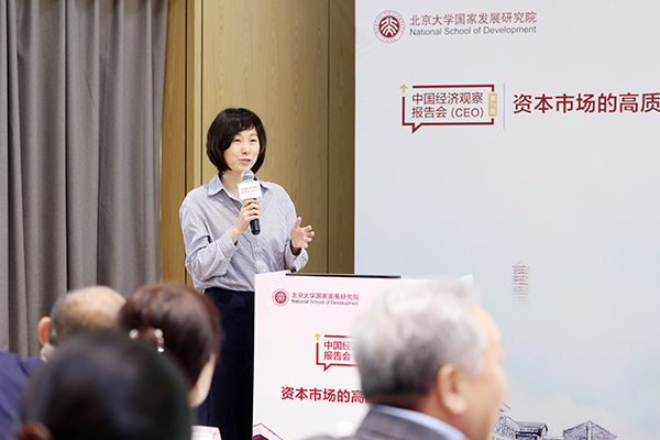 活动主旨演讲由北大博雅特聘教授、国发院院长黄益平主持,主题演讲由国发院副研究员、绿色金融实验室副主任何晓贝主持。