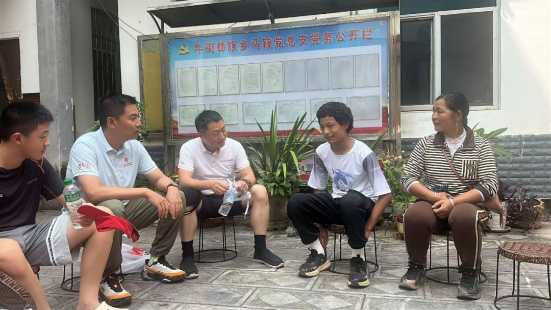 8月14日,在班长车鸣与班委吴雅琴、黄波的带队下,17人组成的公益团队抵达弥渡县,与罗文武校长一行汇合,随即开启为期两天的家庭探访。探访期间,牛街乡天气多变、时雨时晴,部分路段因大雨出现路基坍塌、落石堵路等险情,给行程带来极大挑战。但团队成员始终以“不让一名学子落空”为目标,克服路况困难,道路不通时,便在村委会与学生及家长见面;得知学生何健杰在上学途中被落石击伤住院,团队还专程前往大理第一人民医院探望,送上慰问与关怀。最终,团队顺利完成12名学生的走访,将助学款逐一送达,并与学子们深入交流,倾听他们的学习生活困惑,用鼓励点燃他们的求学信心。此外,团队还走进牛街乡民族中学,实地了解学校办学环境,为后续公益帮扶积累一手资料。