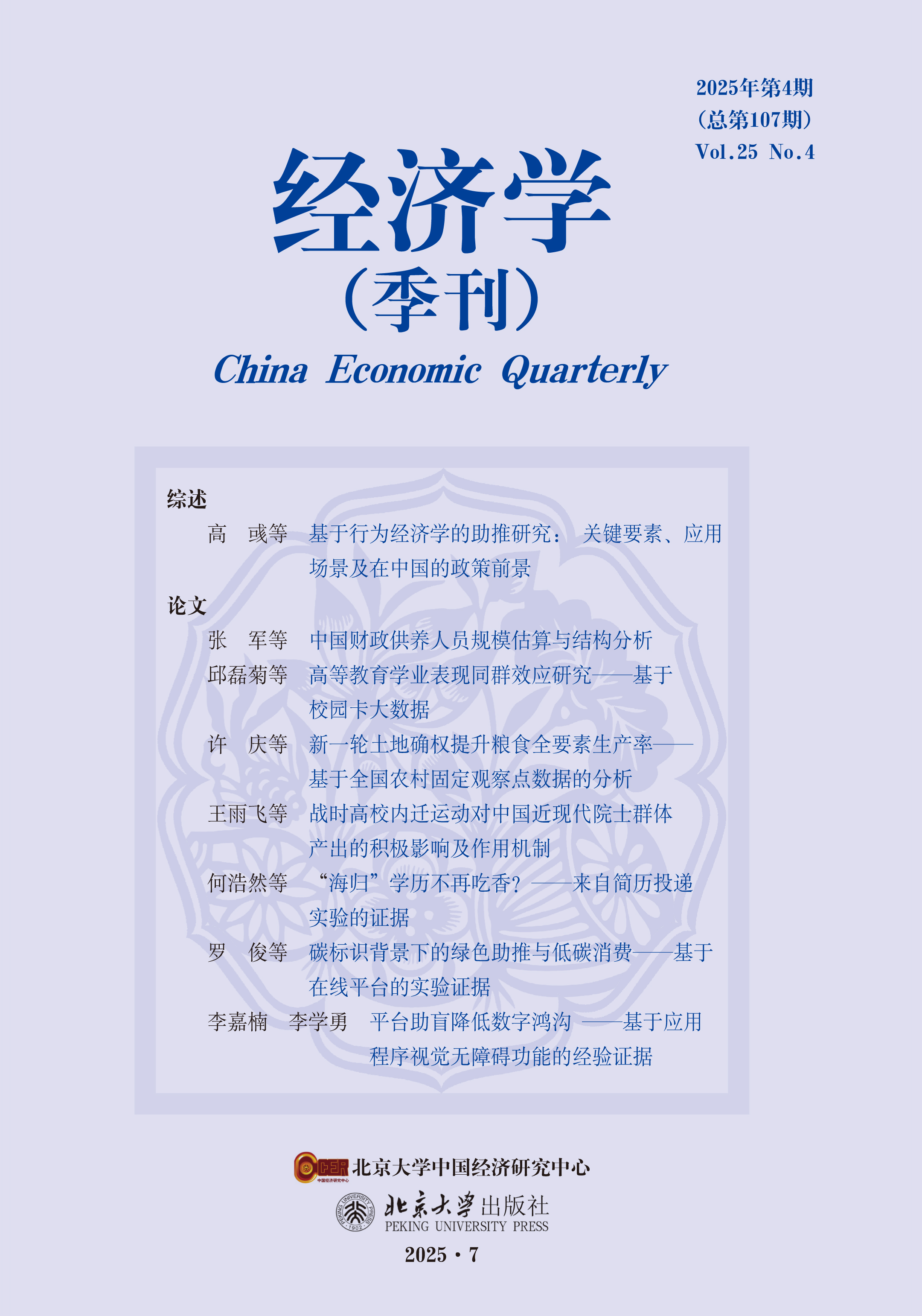 DOI: 10.13821/j.cnki.ceq.2025.04.16《经济学》(季刊)公众号近期将逐篇附全文推送,读者近期可访问中国知网获取全文。开放获取全文可访问北京大学人文社科期刊网,国家哲学社会科学学术期刊数据库。